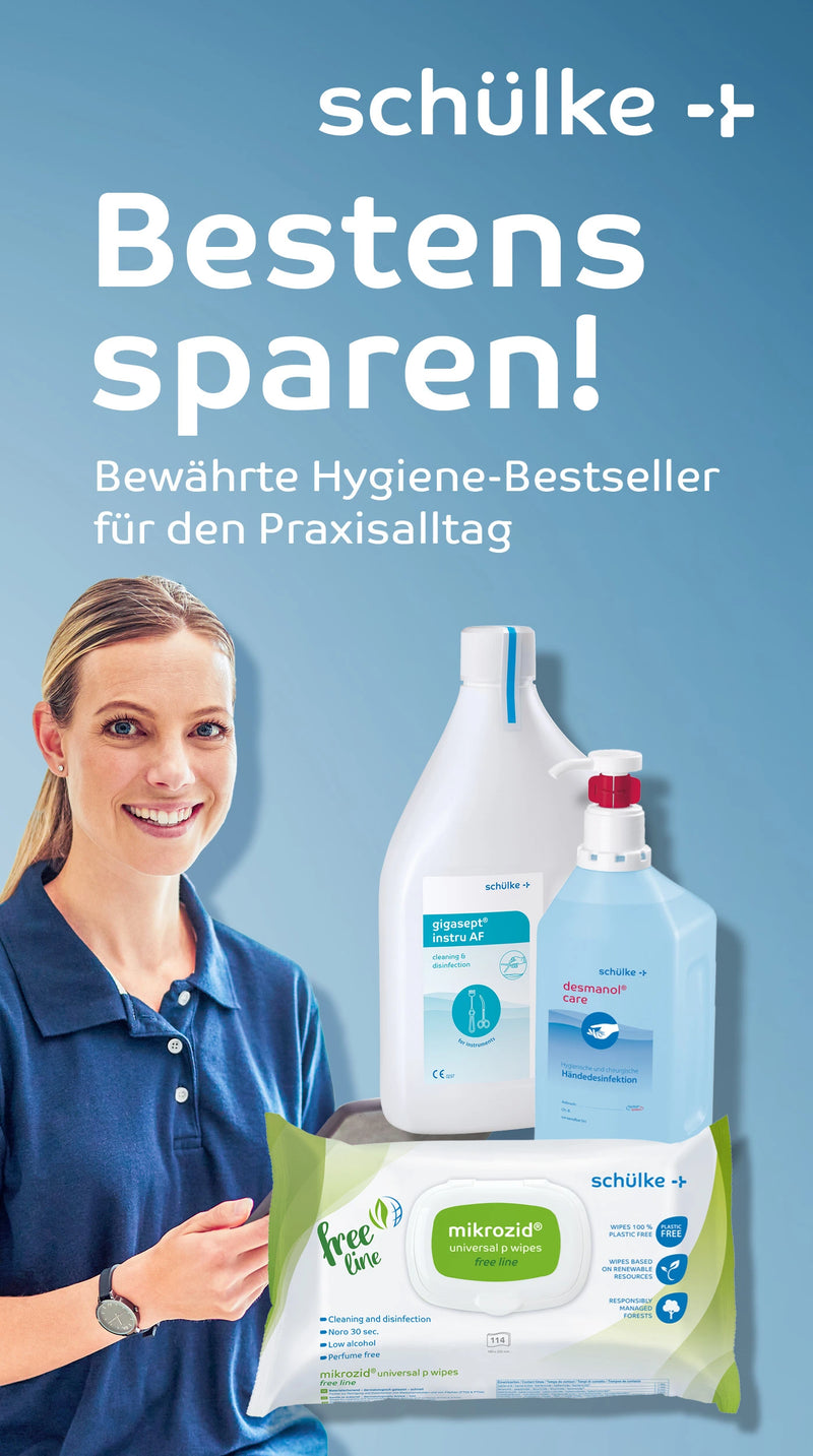Especialmente populares son el Desinfectante de manos Schülke Desderman, que convence por su fórmula amigable con la piel, el Spray desinfectante de heridas Schülke Octenisept, que permite una limpieza rápida y suave, así como el Antiséptico para la piel Schülke Kodan, que garantiza una desinfección segura de la piel en procedimientos médicos. Estos tres productos son ejemplares de la filosofía de la marca: máxima eficacia, alta compatibilidad con la piel y seguridad comprobada.