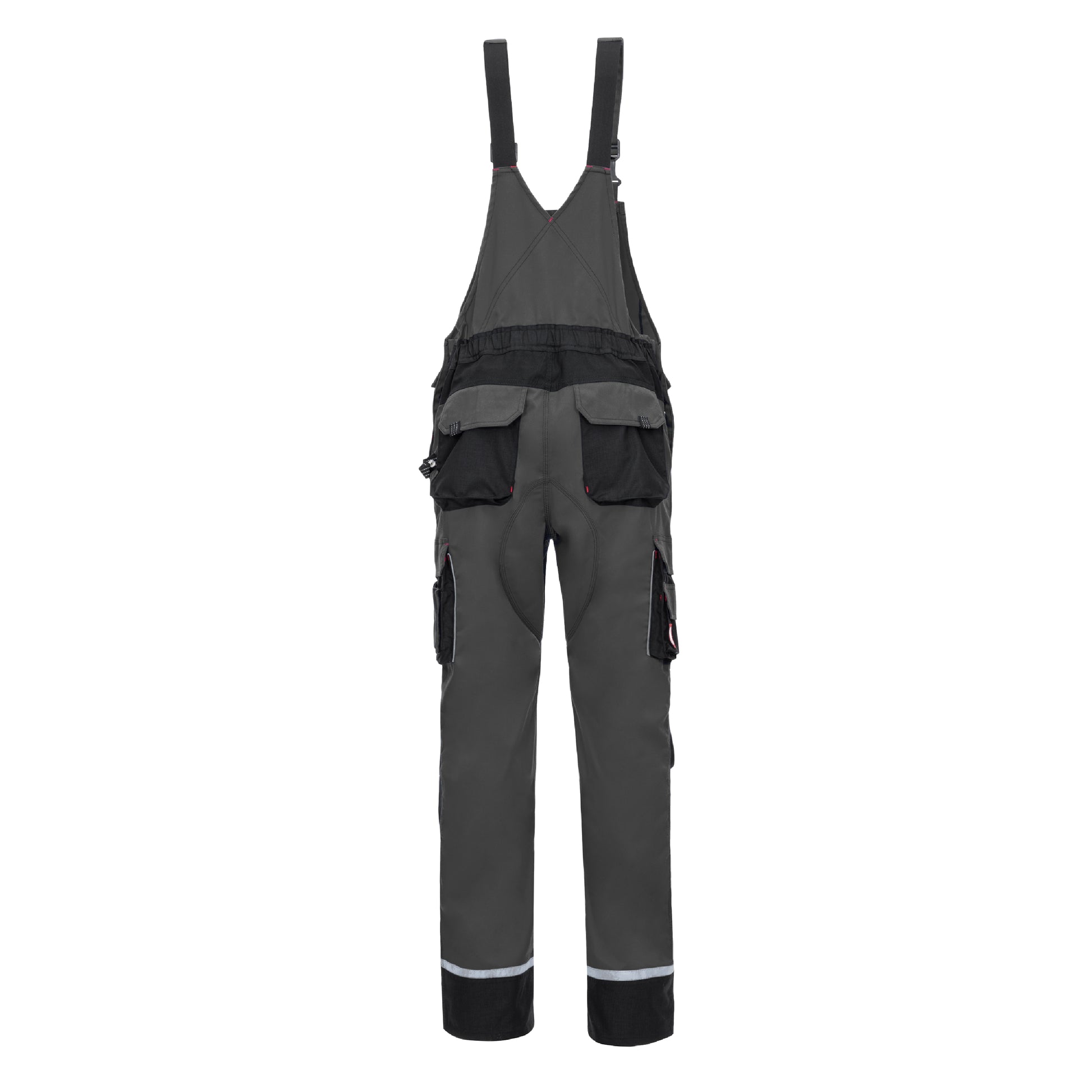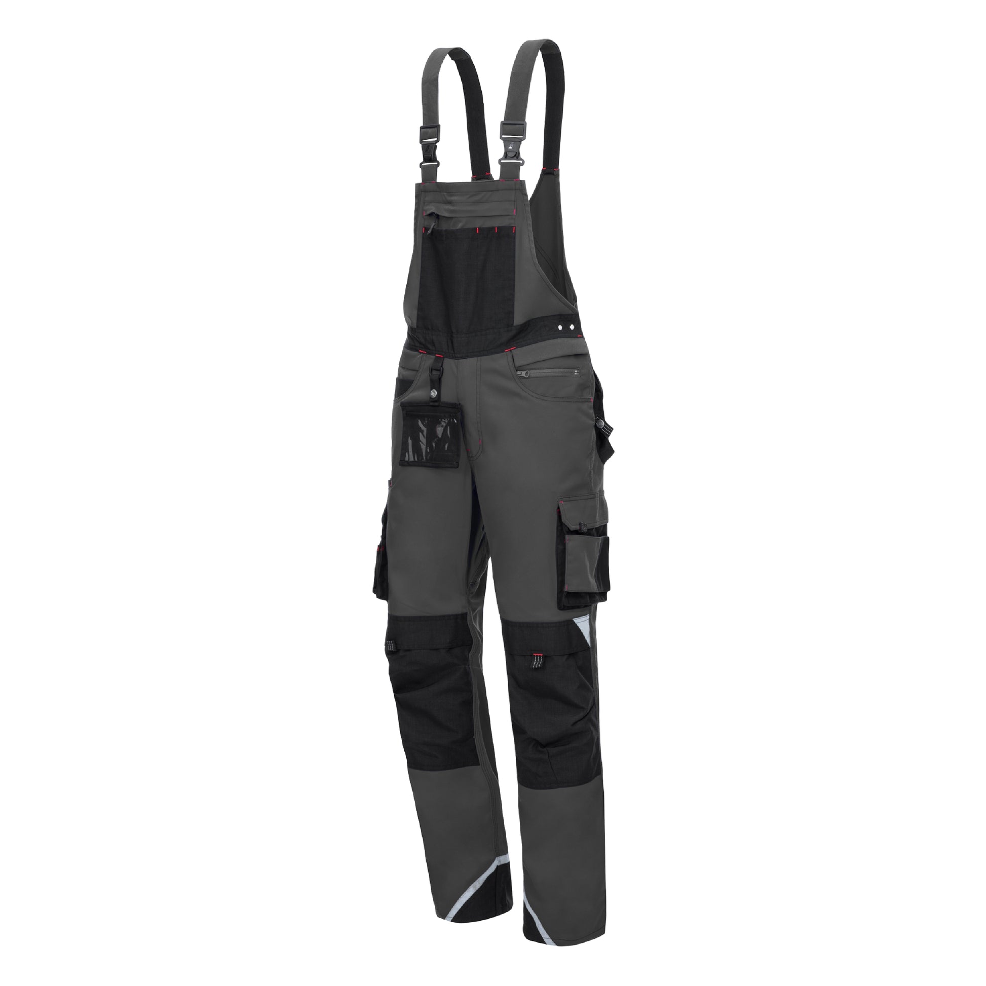 El peto NITRAS MOTION TEX PRO FX en gris/negro (código de color: 1210) convence por su material innovador y transpirable con un peso de 280 g/m² y su comodidad especialmente alta gracias a su cintura elástica en dos direcciones. Los refuerzos robustos en la entrepierna, así como CORDURA® en las piernas, las rodillas y los bolsillos traseros, el bolsillo exterior con pechera y los puños de las piernas garantizan una larga vida útil. El peto está equipado con una variedad de prácticos bolsillos, incluidos bolsillos en los muslos con solapa, un bolsillo para metro, un bolsillo interior en el peto con cremallera YKK y bolsillos en las rodillas para acolchado. El material reflectante 3M Scotchlite™ aumenta la visibilidad y, por tanto, la seguridad en el lugar de trabajo. Puños con correa elástica, cierres de clip resistentes, presilla para martillo ajustable, anilla en D y portatarjetas de identificación completan las características. La calidad premium está certificada según OEKO-TEX STANDARD 100® y ofrece un ajuste moderno y cómodo. Opcionalmente están disponibles bolsas de herramientas 770P y protección para las rodillas 76K (EN 14404).