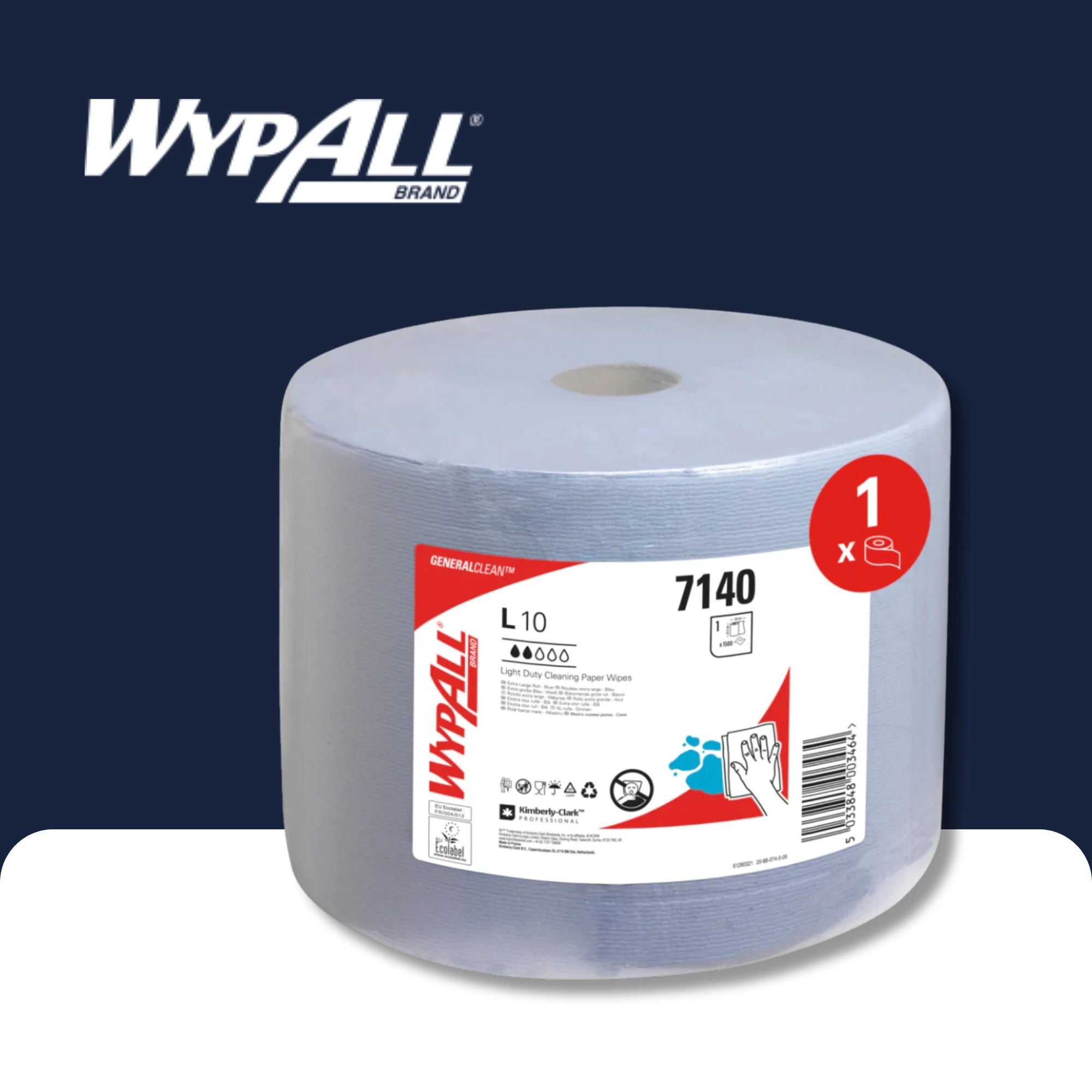 Vendor:Kimberly-Clark GmbHWYPALL® L20 Paper Wiping for Maintenance Work - Stor rolle - Ekstra bred / blå - 1 rulle x 500 ark | Papp (1 rull)