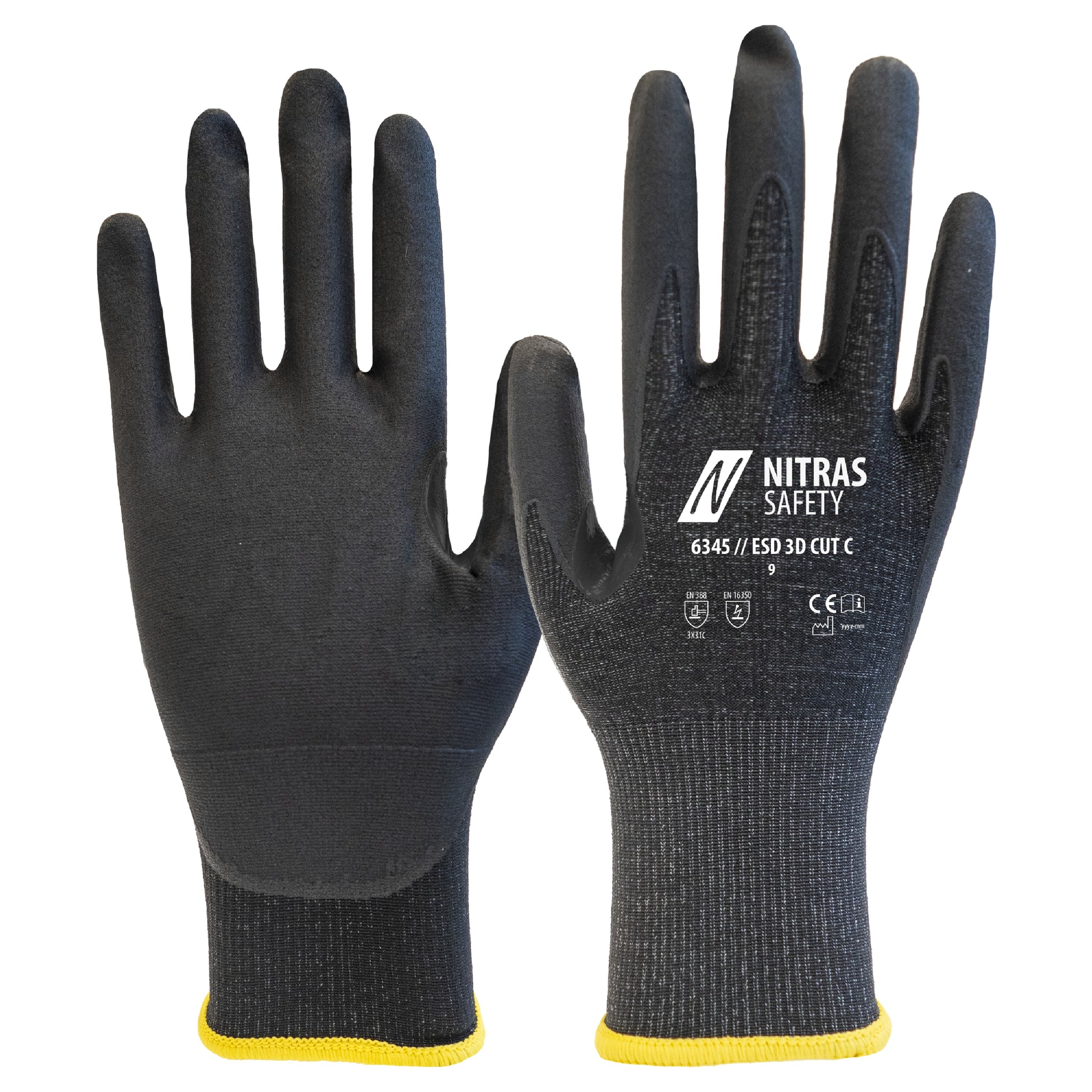 The NITRAS ESD 3D CUT C cut protection gloves are the premium solution for maximum safety and comfort when working with an increased risk of cuts and injuries. Made from a special yarn mix (HPPE, polyamide, elastane, carbon) with integrated carbon thread, they not only offer a high level of cut protection, but are also extremely non-slip and abrasion-resistant thanks to the nitrile microfoam coating. The innovative 3D FIT technology guarantees perfect fit and dexterity, while the reinforced thumb crook and partially coated design provide additional protection. Touchscreen capability, washability, antistatic properties and tested skin compatibility (dermatest®) round off the overall package. Ideal for precise work – even when handling food.